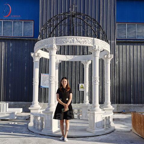 Grote Hand Gesneden Outdoor Natuursteen Pavilion Grote Klassieke Wit Marmer Tuin Tuinhuisje Voor Verkoop